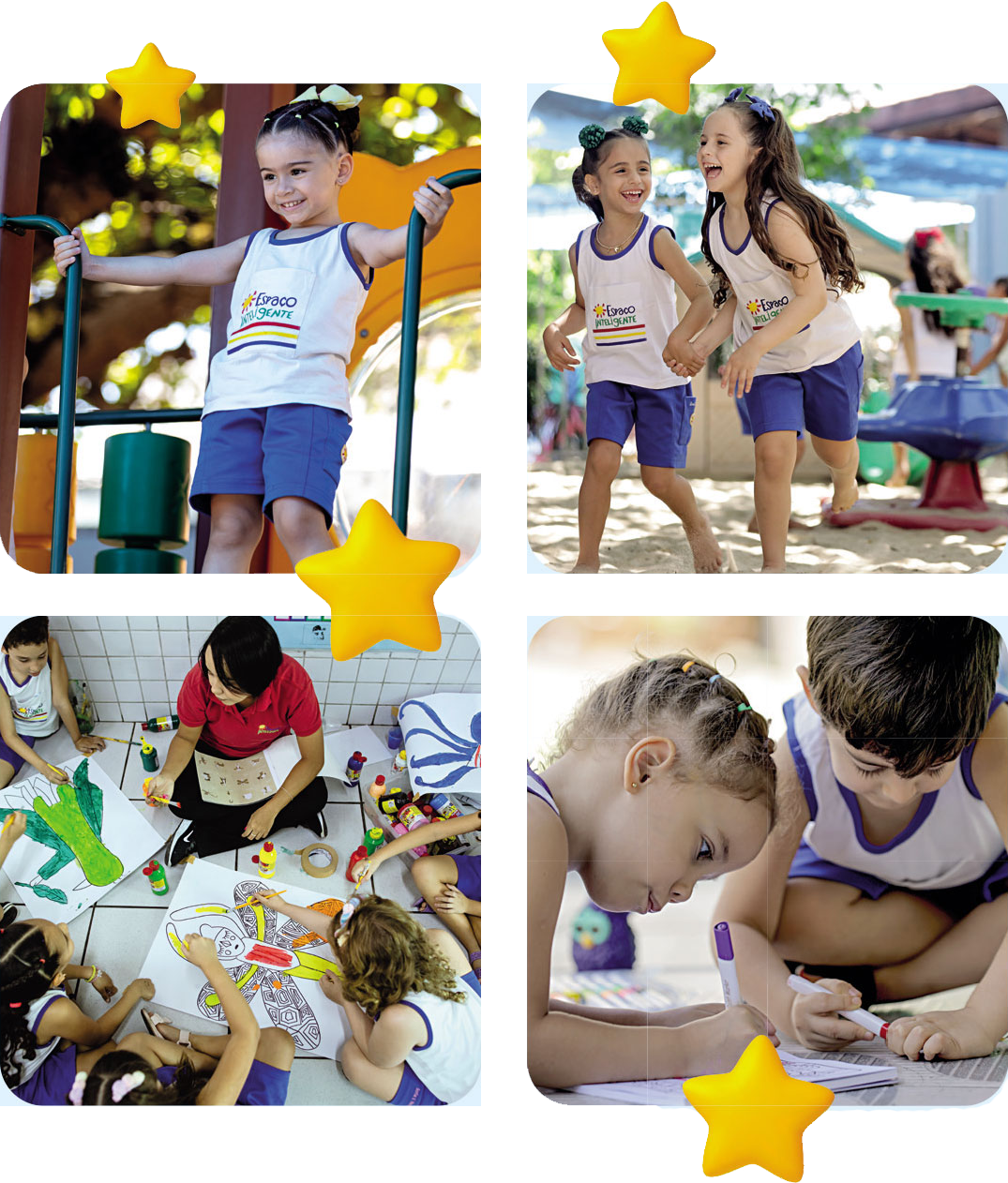 Respeitando as particularidades e o ritmo de cada criança, a Creche-Escola Espaço Inteligente baseia sua proposta pedagógica no desenvolvimento integral por meio do estímulo às múltiplas inteligências.